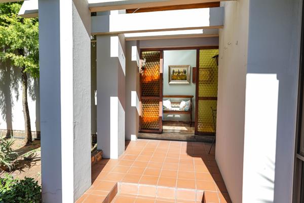 There are three areas in which to sit and relax within the home Firstly, the transitional space, with a small office niche, fitted with cupboards and shelving, opens onto a small patio which acts as a breeze through to a spacious enclosed entertainment area. This