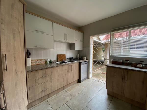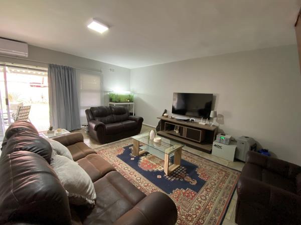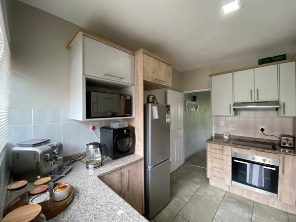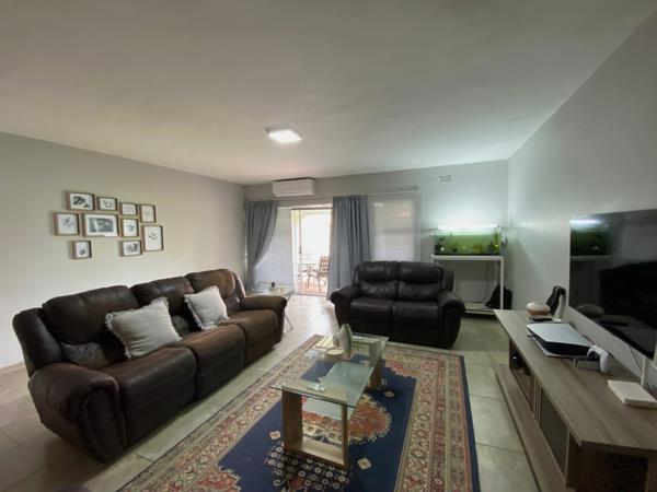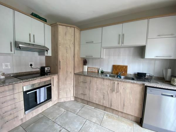 The beautifully designed kitchen is fitted with granite tops, a built-in under counter oven, glass hob and has space for a dishwasher. A glass sliding door leads from the living area out to a covered patio and private garden. The lounge/living area is air-conditioned.