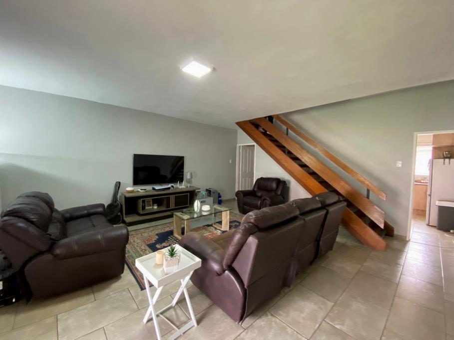The three bedrooms upstairs all have built-in cupboards, with the main bedroom, as well as the one guest bedroom being air-conditioned. The bathroom has a shower, toilet and basin.