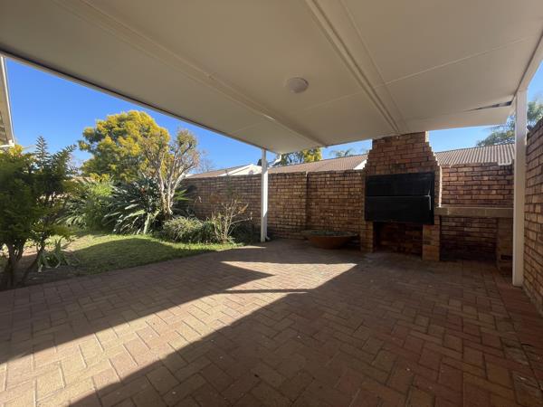 The spacious living room extends easily onto an undercover patio, complete with a braai facility ideal for entertaining and a charming small, enclosed garden. The dining room opens to a larger rear garden featuring a refreshing swimming pool, offering a private oasis for relaxation and fun.