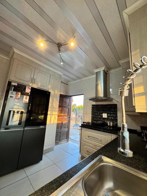 The newly renovated kitchen boasts modern finishes, creating a stylish and functional space for cooking and gatherings. The entire home is fully tiled, offering a clean, low-maintenance appeal throughout.