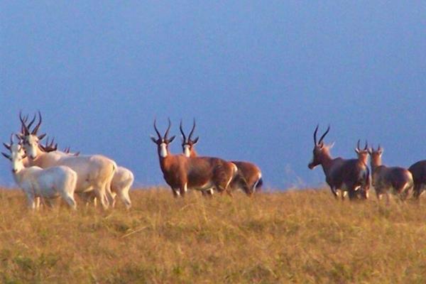 Game: Diverse population including Springbuck, Blesbuck, Reedbuck, Oribi, Waterbuck, Zebra, Oryx, Red Hartebeest, Grey Duiker, Impala, Kudu, and Nyala.
