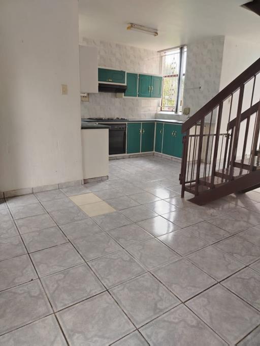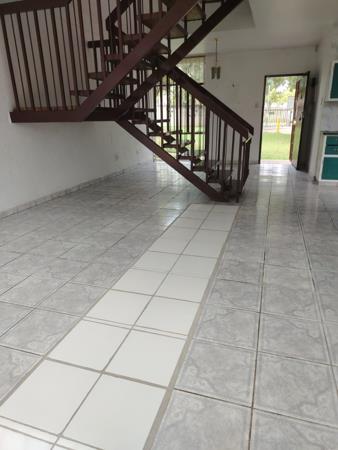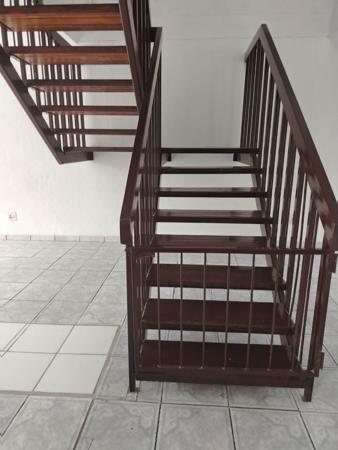 Wooden staircase with 2 spacious bedrooms with built in cupboards,has a separate toilet and bathroom,the property has a single carport