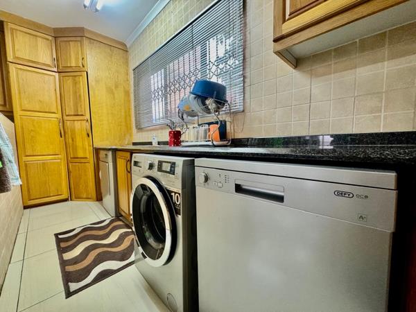 Down the passage are three spacious bedrooms, each fitted with built-in cupboards and soft carpets. The main bedroom includes an ensuite bathroom, while the second modern bathroom serves the rest of the home.