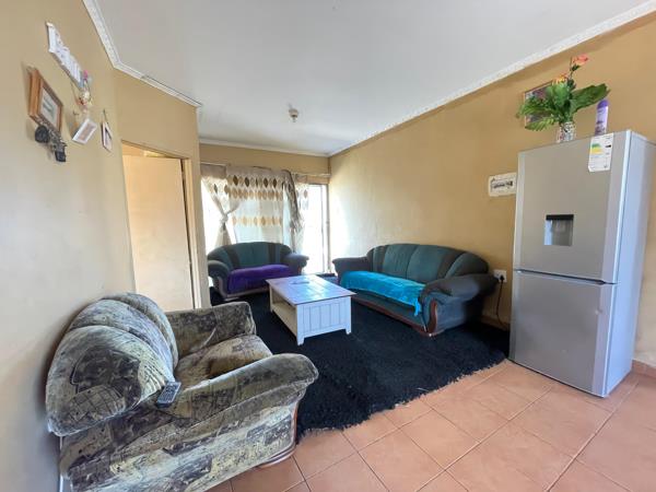 The home features built-in units in both bedrooms, with the main bedroom offering an en-suite bathroom for added convenience. The open-plan lounge and dining area are tiled for easy maintenance, and the compact kitchen is equipped with cupboards. A full bathroom with a shower, toilet, and basin provides ample space for daily needs. Security features include burglar bars on all windows and the sliding door, ensuring peace of mind for residents. The property also offers a carport for one vehicle and a lockable gate for added security. With its attractive features and prime location, this home presents an excellent opportunity for both investors and families seeking a comfortable and secure living space.