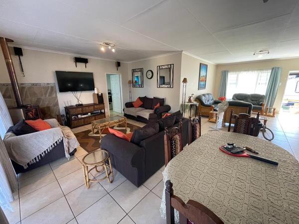 The main house comprises 3 x bedrooms with BICs, 2 x bathrooms, one being main en-suite, kitchen with gas stove and electrical oven, cupboards are solid rosewood with granite worktops, open plan lounge and dining room with a fire place, study, covered patio with built-in braai and a double garage.