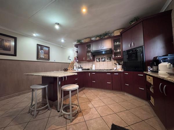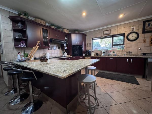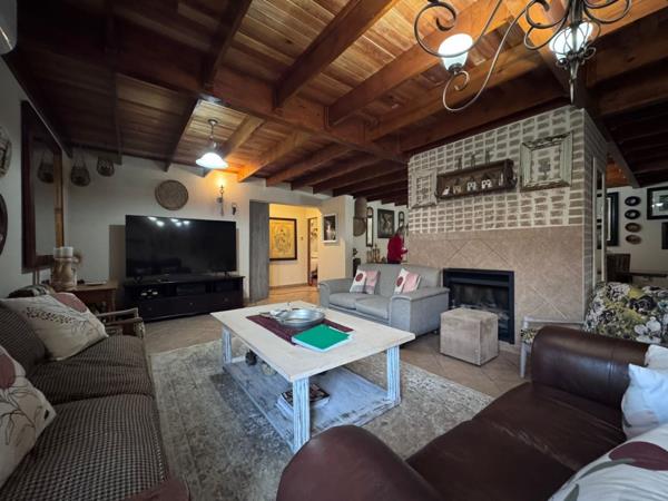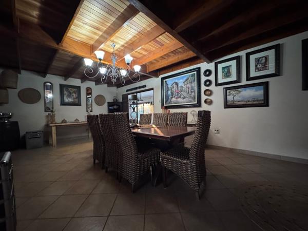 - Huge open dining area and lounge with a center island which has fire place and built-in braai