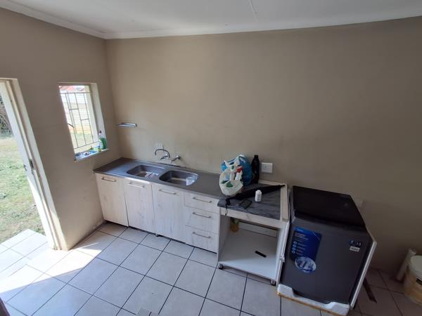 The home boasts four well-sized bedrooms, complemented by two bathrooms, including a primary suite with a walk-in closet and en-suite bathroom. Additional storage is abundant, with built-in cupboards lining the passage. The entire house is elegantly tiled for easy maintenance.