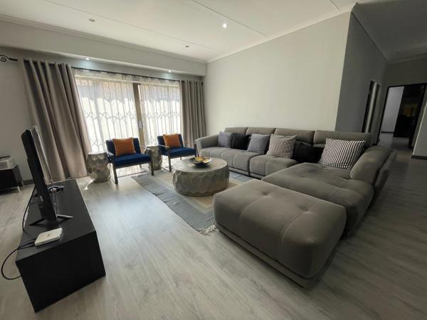 This 24-hour guarded complex is extremely sought-after and offers families a carefree lifestyle with top-class security, including a guard house, night patrols, electric fence with thermogenic sensors/infrared camera system. This particular outstanding, modern, open plan home has been redesigned with care and attention to detail on the finishes. This fabulous townhouse does not disappoint. A manicured, landscaped, wrap-around garden and an outdoor patio are the perfect backdrop for private entertaining. There is space to pop in a pool too!