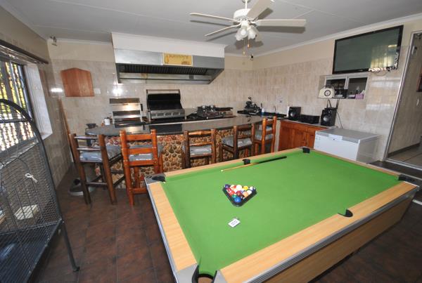 The kitchen fitted with Rhodesian teak cabinetry, granite tops, a gas and electric stove, separate laundry area would suit any passionate cook.