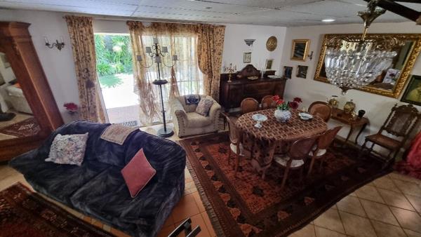On the ground floor, an open-plan kitchen with its scullery invites culinary adventures, while a dining room, lounge and TV room offer ample space for relaxation and entertainment. Ascent to the first floor to discover three bedrooms, two bathrooms and a balcony overlooking the lush surroundings - a perfect spot for morning coffees or evening sunsets.