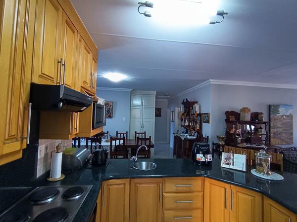 The main living area, consists of an open plan kitchen featuring sleek granite countertops. This modern touch adds elegance and durability to the space while providing a perfect meal preparation area.