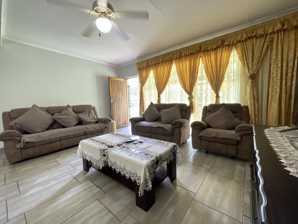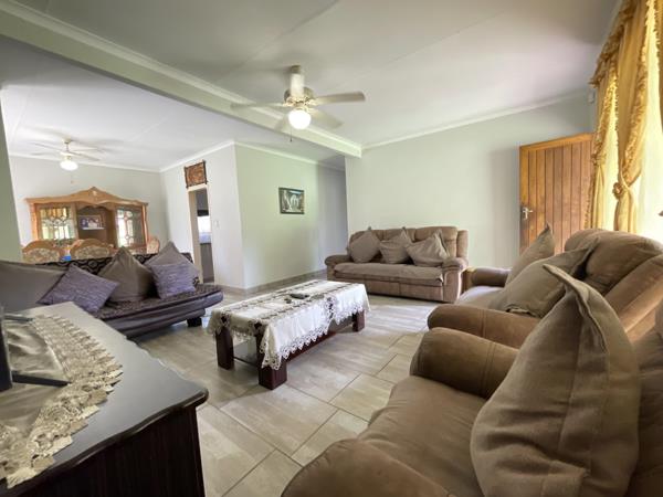 The home boasts a spacious open-plan lounge and dining area with tiled floors and a ceiling fan light, creating a welcoming atmosphere.