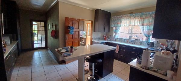 Nestled on a picturesque, tree-lined lot, this stunning house exudes a welcoming ambiance from the moment you enter. The expansive living room is both warm and inviting, perfect for gatherings. The generous lounge provides ample space for memorable Sunday lunches. The kitchen boasts modern cabinetry and seamlessly connects to a vast enclosed entertainment area featuring a built-in braai, wrapping around both the kitchen and lounge. The TV room is equipped with air conditioning and a charming fireplace, adding to the cozy atmosphere.
