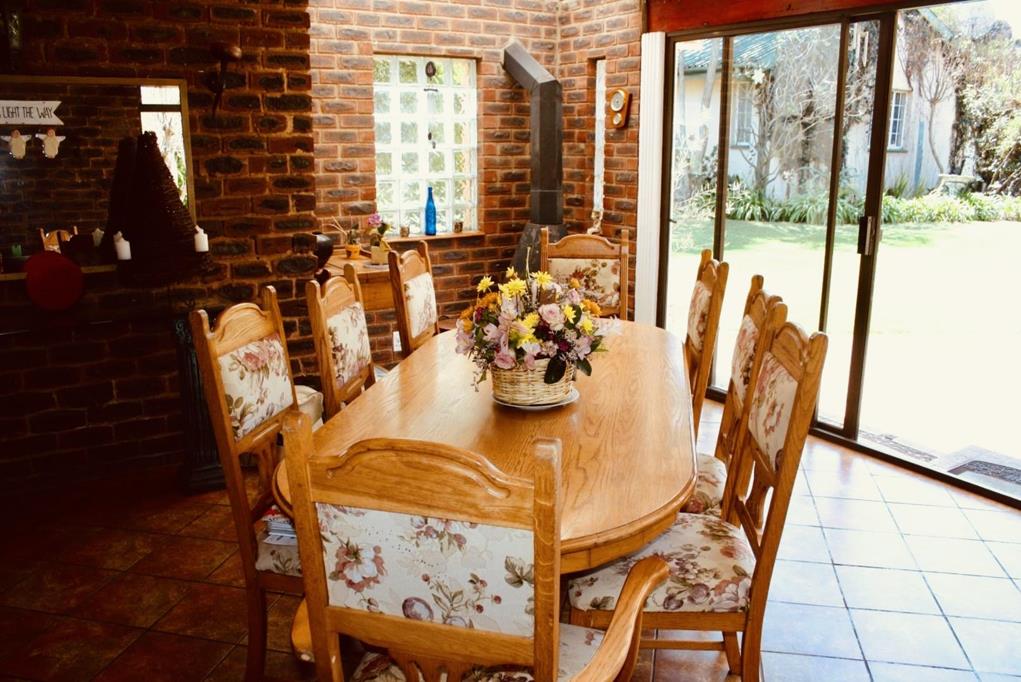 The large swimming pool area is perfect for entertaining, featuring a beautiful thatch lapa and boma area next to it. This property also has 2 garages and open parking for another 3 vehicles. Additionally, it has a borehole linked to an irrigation system and 1x JoJo tank (5000 liters) with a pump connected to the house. For safety, the property includes an intercom system, alarm system, burglar bars, safety gates and automated access gate.