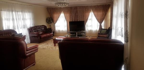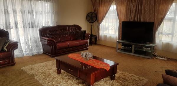 Ideal for extended families, this spacious residence boasts 8 bedrooms, 4 bathrooms, a grand main lounge, a generous dining room with a charming sunroom, and an additional lounge adjacent to the kitchen. Three bedrooms feature private lounges for added comfort. Step outside the main lounge to a tiled veranda/patio area overlooking the lush garden.