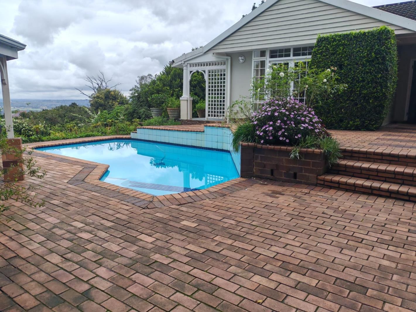 Enjoy breathtaking scenic views and take advantage of the beautiful blue pool perfect for outdoor gatherings. The property also boasts a tiered grass area, which can easily be converted back into a lawn tennis court, adding even more potential for leisure and entertainment.