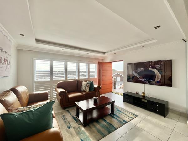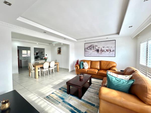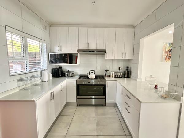 At the heart of the home, the sleek, contemporary kitchen features striking Caesarstone countertops, a gas hob and electric stove, and an inviting breakfast nooka true culinary haven for any aspiring chef. The open-plan lounge and dining area, bathed in natural light, seamlessly extends onto a balcony, perfect for relaxed summer days.