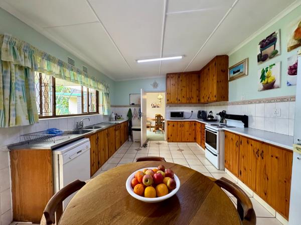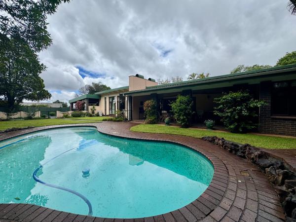 Additional features include double extra-length garages, a double carport, a neat outside room with bathroom, and an external laundry. The covered veranda with built-in braai overlooks the sparkling pool and beautifully manicured, level garden.