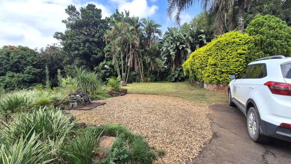 Beyond the main house, a separate building houses a laundry, domestic quarters, and a large bachelor flat. The flat includes a galley-style kitchen with a double sink, built-in cupboards, and countertops. Its open-plan layout combines a lounge, dining area, and bedroom, complemented by a separate bathroom with a shower. A paved alfresco dining area provides the perfect spot for braais, while another paved section on the other side of the building conveniently accommodates the washing line. The back of the property is fenced off, allowing tenants to keep pets separate from the main garden, which is terraced down to the road.