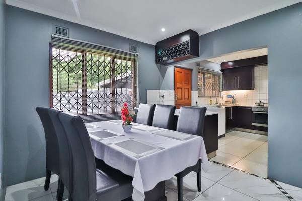 Set on an 839 m erf, the property includes a large, fully fenced garden with plenty of space for children, pets, or outdoor gatherings. There is secure parking for multiple vehicles, ensuring peace of mind for homeowners and guests alike. The home is further enhanced by excellent security features, including an alarm system, CCTV, burglar bars, and electric fencing.