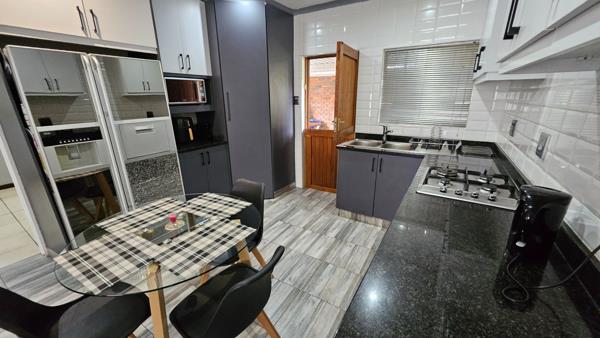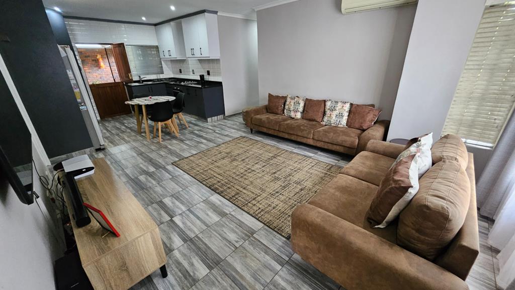 A standout feature is the spacious, semi-enclosed entertainment patio complete with a built-in braai perfect for relaxed gatherings all year round. The property also offers undercover parking for two cars beneath a solid roof carport.