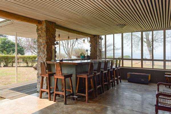 Entertain in style from the wrap-around, covered veranda complete with swimming pool, bar area, built-in braai and fire pit.