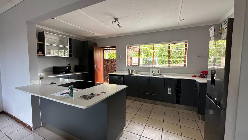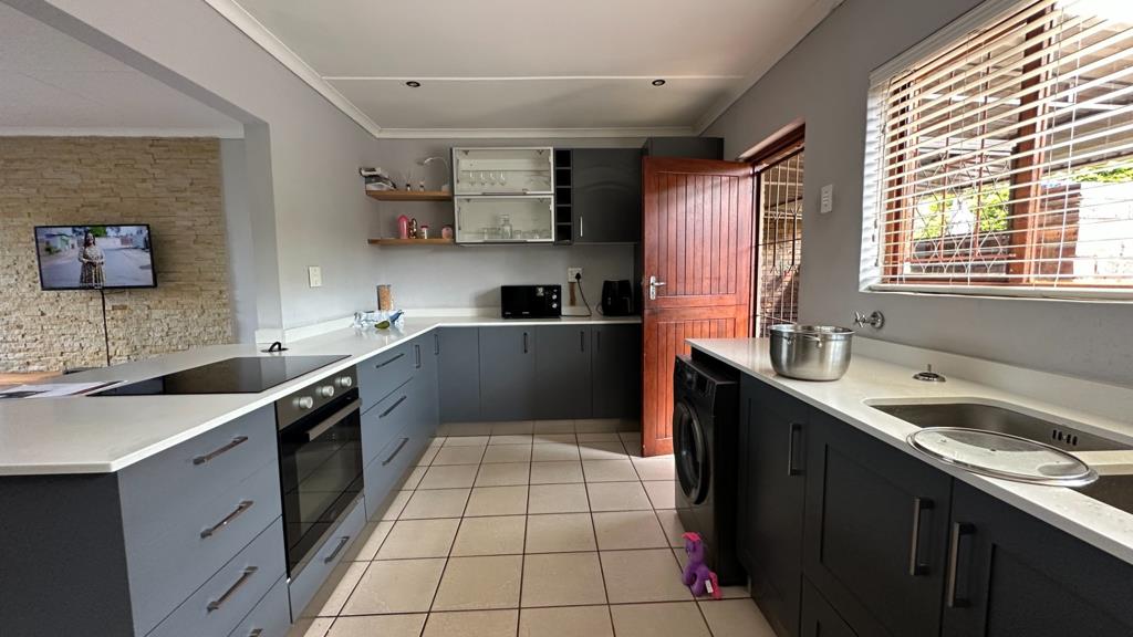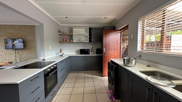 The entire home is fully tiled for easy maintenance, and parking is plentiful with a secure garage, a carport, and additional open parking space. The property is secured with an electric fence and remote access gate, ensuring peace of mind.