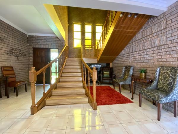 This solidly built facebrick home is a haven for a large family, set within expansive, beautifully landscaped gardens complete with a sparkling pool.