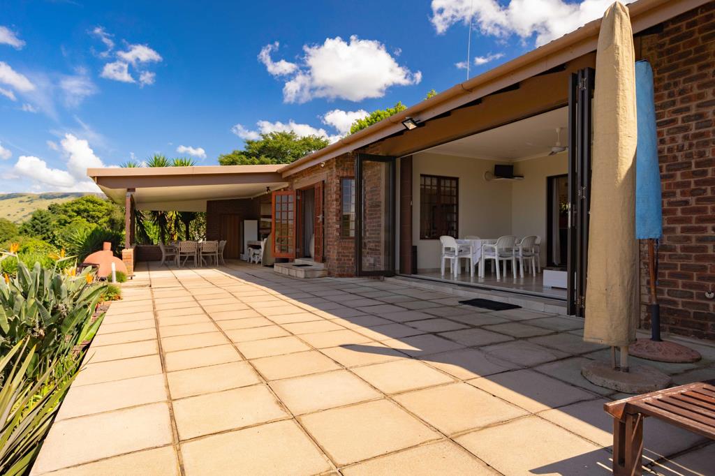 A beautiful 5 -bedroom home set alongside the expansive Thornlea Dam has become available in Tala Valley, Camperdown. This property is part of a private 100-acre estate and is set in the most tranquil surroundings offering a beautiful panoramic view of the dam and scenic landscape beyond. As the photos show, this welcoming and stylish home is one of 8 homes on the estate and offers an open plan, air-conditioned lounge, dining room and kitchen which is a perfect blend of modern yet homely. The kitchen is comfortable with a centre island, ample cupboard space, space for large appliances, a countertop electric hob and an eye level oven as well as an additional laundry and cupboard area.