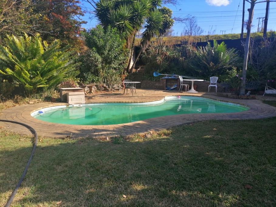 Outdoors, a private swimming pool and established gardens provide a verdant oasis, perfect for relaxation. With two garages, ten additional parking spaces, staff quarters, electric fencing, and water tanks, this property ensures comfort and security.