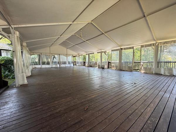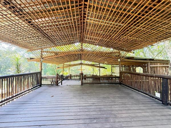 Main lodge area 226m2, entrance portico 44m2 with deck under tent of approx 72m2 as well as deck under fylon and wattle inthingus at 180m2. Offers appealing reception area with fully equipped kitchen, pantry, consumable store, lounge, TV room and dining room. There is an attached cold room, additional prefab type ablution block attached as well as sauna, Jacuzzi and pool area which have been effectively rendered part of the lodge. There are partly open sided timber Lapas which have been combined for use as chapel, but are well suited to a myriad of functions related activities.