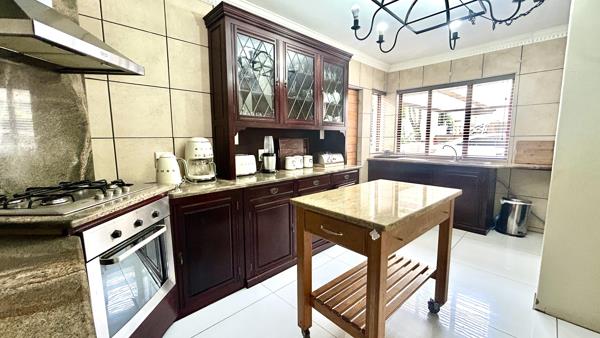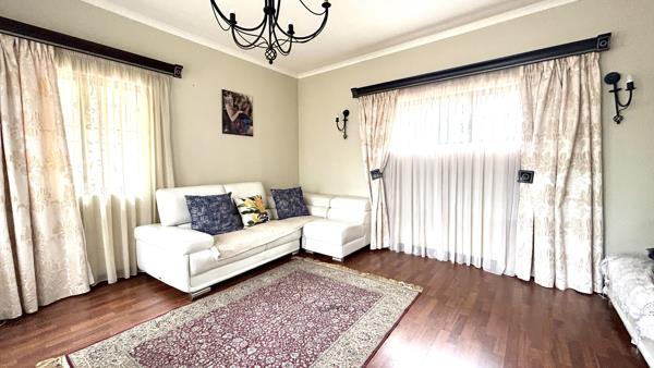 Upstairs, the main en-suite bedroom has a walk-in closet, his-and-hers bathroom, adjoining lounge and a private balcony. Two additional bedrooms with built-in cupboards share a full bathroom, with one bedroom also opening onto the balcony. Extras include a paved courtyard, Jacuzzi (currently not in working order), a 3-car tandem garage and double carport. A separate flatlet with its own bedroom, lounge, bathroom, and kitchenette provides added income potential or private guest accommodation.