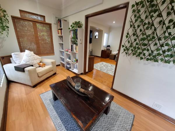 Set on a large piece of land, the home offers exceptional space under roof. It features three well-sized bedrooms all with built-in cupboards, two bathrooms, two lounges, and a sunroom for relaxed living. The fully fitted modern kitchen is a highlight, complete with a charming bay window breakfast nook. Adding to its timeless appeal, the home is enhanced with beautiful wooden flooring.