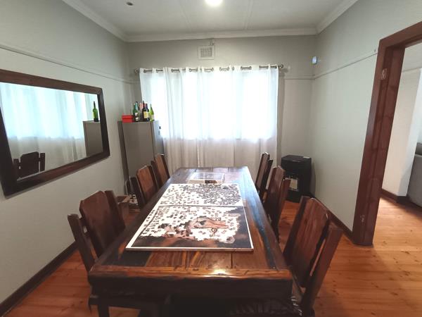 The spacious dining area, also boasting a stone fireplace, easily accommodates an 8-seater dining table, making it ideal for hosting family and friends.