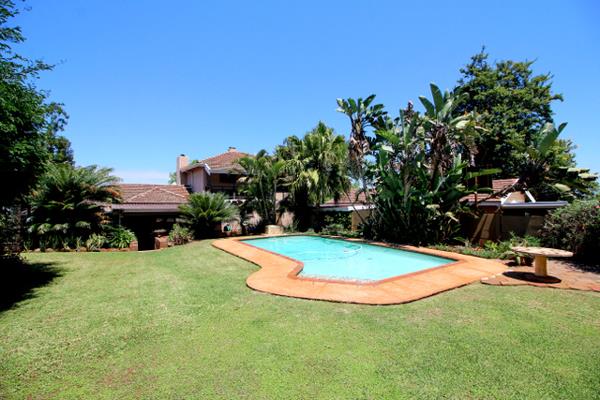 The flat, expansive garden offers ample space for children and pets to play freely, while ample parking, including a garage, carports, and maids quarters or storeroom, ensures practicality meets lifestyle.