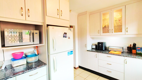 With security a key focus for sectional title buyers, this unit features Trellidoor security throughout, palisade fencing, and the peace of mind that comes from being part of a secure community. A single garage and carport offer protected parking, and the addition of a 2,200-litre water storage tank brings welcome backup.