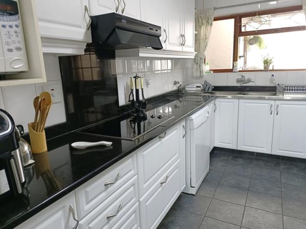 The kitchen is a cooks dream, complete with a double oven, glass-top hob, extractor fan, and wraparound built-in cupboards finished with elegant granite counter tops. With two additional bathrooms in the home, early-morning queues are a thing of the past.