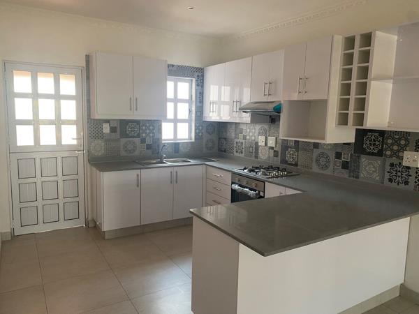 Offering an open-plan design, where the modem fitted kitchen extends into the living space, allowing for convenience between the two areas. French doors open onto a covered patio and exclusive garden with the added bonus of a built-in braai.