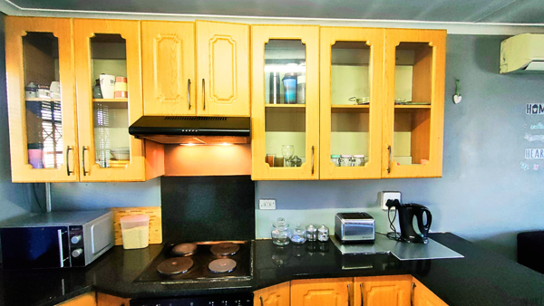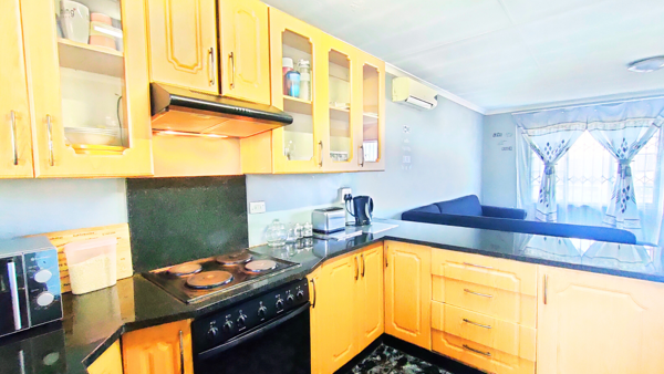 Both front and back patios extend the living space outdoors, with the rear patio covered for shade and weather protection. A built-in braai area adds to the convenience of entertaining at home. The unit includes three undercover parking bays located close to the entrance, providing ample space for residents and visitors. Security is prioritised in the complex with automated gate and perimeter fencing.