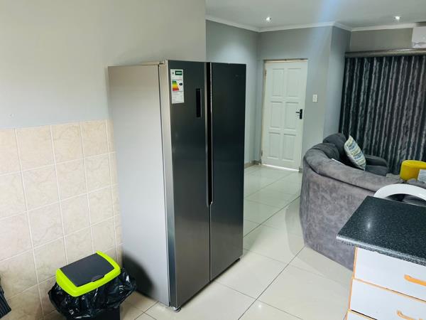 This well-maintained townhouse offers modern living with great features. It has two bedrooms, both with built-in cupboards, and one bathroom featuring a bathtub with a shower overhead. The fully fitted kitchen comes with ample built-in cupboards. The open-plan living area is perfect for family time and entertaining. Tiled floors throughout provide a clean, modern look. There is a carport for one vehicle, plus a spacious yard that can accommodate up to three cars. With its stylish finishes, practical layout, and large outdoor space, this property is a must-see.