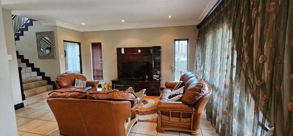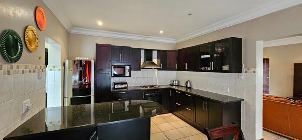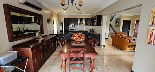 On offer is this exquisitely luxurious home in the sought-after Kembali estate. The home features open-plan living spaces lounge, dining, kitchen on the first floor with a scullery as well as double garaging. Boasting tiling throughout the home, there is a magnificent staircase adding a flair of opulence. There is a guest loo on this level as well as a covered patio that is perfect for enjoying the serene calmness of the outdoors.