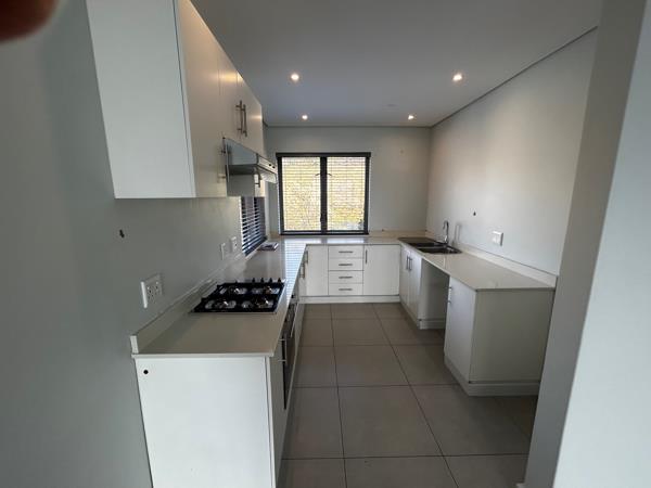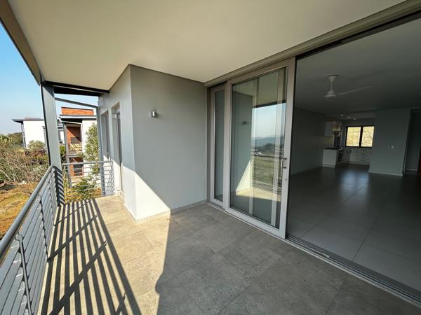 The lounge with balcony is open plan to the modern stunning kitchen. Two generously proportioned bedrooms are situated off the lounge, one with en-suite bathroom (shower, toilety, basin) and the other with bath, basin and toilet)