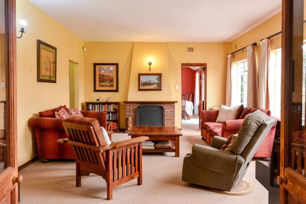 Downstairs has a bright entrance hall and a wide stairway with parquet floors and a guest loo. There are two lounges and a dining room that will accommodate a large dining room suite and a great solid wood and well-equipped kitchen with granite tops, plus a separate scullery and laundry . There is a large covered veranda at the front which overlooks the rolling lawns of the large garden. The pool and braai area are privately tucked away off the family room. This home is great for entertaining.