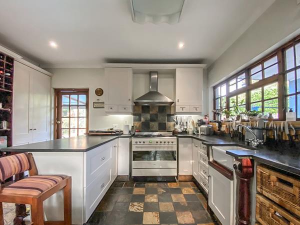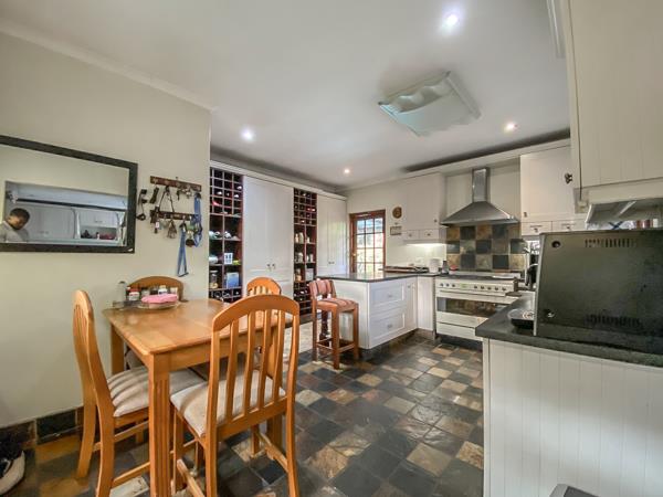 The layout is incredibly practical. The main house offers a true sense of home with three comfortable bedrooms, a home office, and two inviting lounges, each with its own fireplace for those chilly Midlands evenings. Step out onto the balcony from either lounge and take in peaceful views of the lush garden below, perfect for a morning coffee or winding down at sunset. The heart of the home is a charming cottage-style kitchen that opens to a generous scullery and flows effortlessly out to the pool and entertainment area. Its made for easy living and memorable get-togethers.