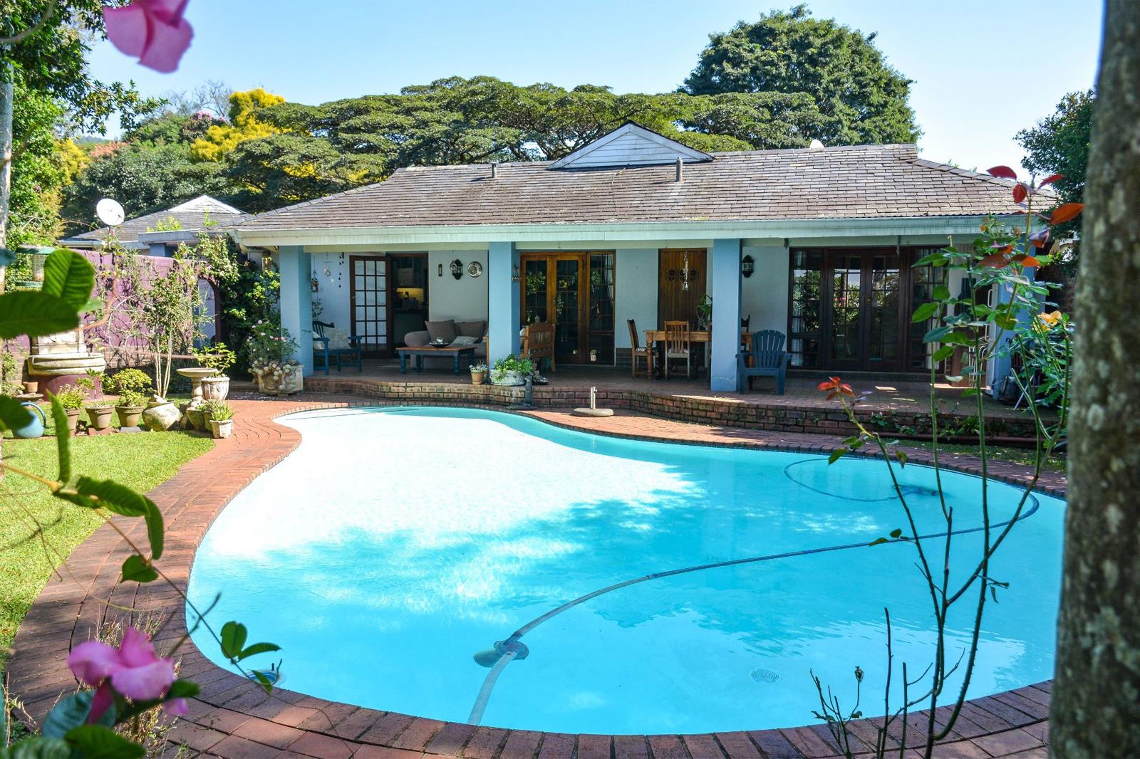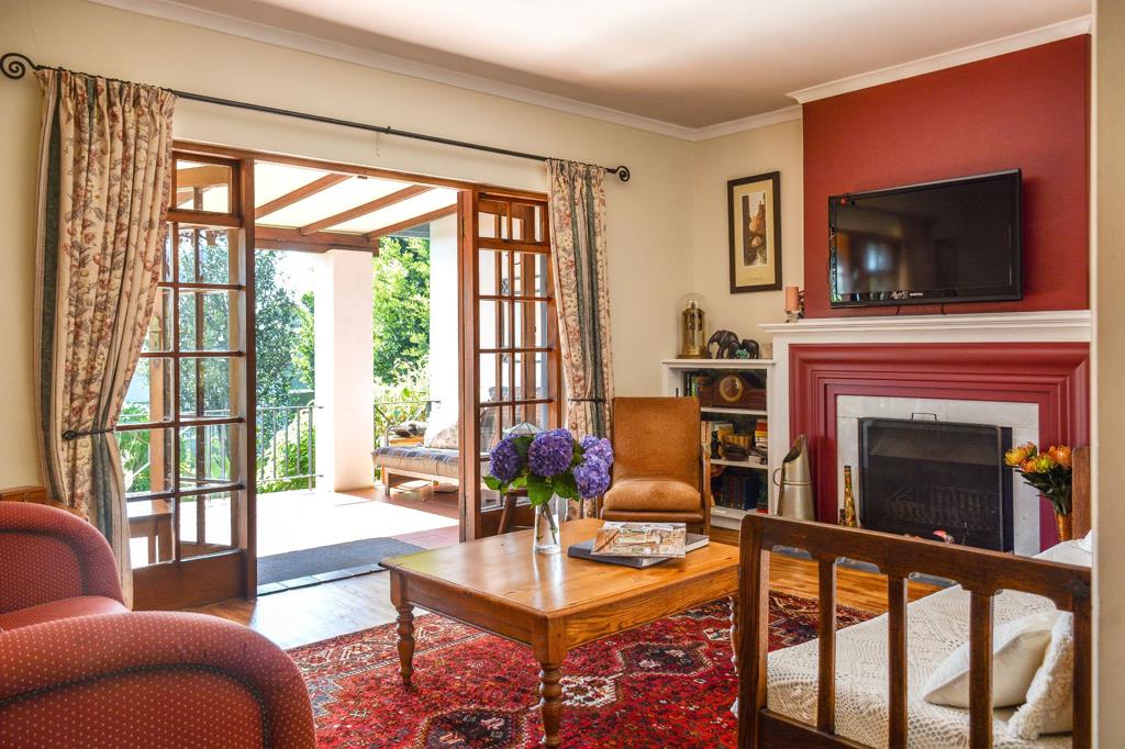 The residence is thoughtfully divided, ensuring a seamless separation between the main house and the B&B quarters, enhancing privacy and functionality. The main house features three cosy bedrooms and an adaptable office space, alongside two inviting lounges each with an elegant fireplace, creating a warm and welcoming atmosphere. The lounges open up to a balcony that overlooks the garden, offering stunning views and a peaceful retreat. The heart of the home is the cottage-style kitchen, which is both spacious and well-equipped, leading to a generous scullery. This area seamlessly transitions to an outdoor pool and entertainment space, perfect for hosting gatherings or enjoying quiet family moments.