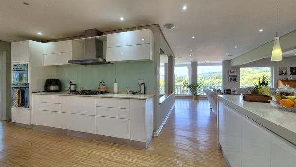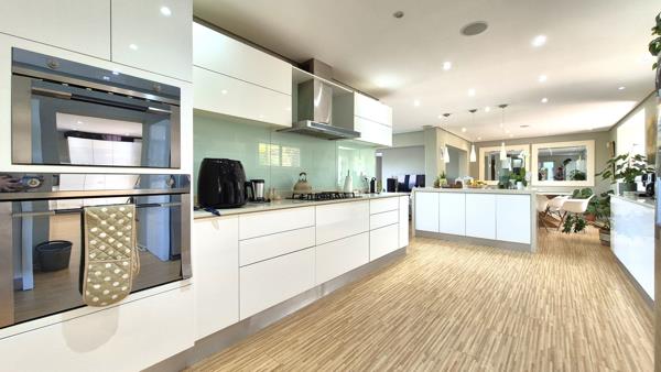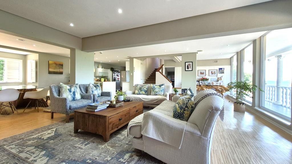 The heart of the home features a sleek, 5-star kitchen with premium finishes, a separate scullery, and a fully equipped laundry. The open-plan kitchen, dining, and lounge areas flow seamlessly into a spacious entertainment area, complete with stackable glass doors that open fully to showcase panoramic views of PMB and a sparkling swimming pool perfect for indoor-outdoor living.