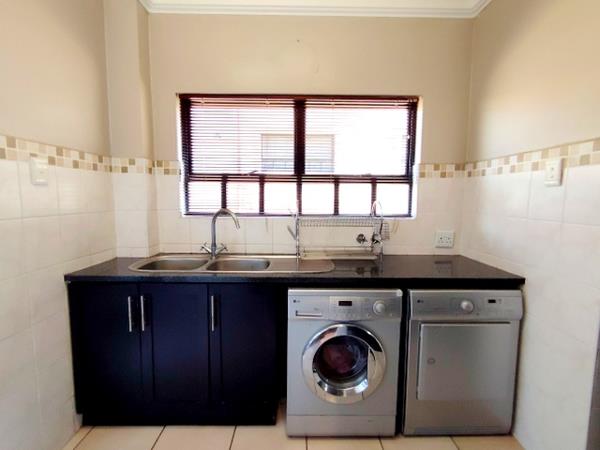 Upstairs, youll find four well-appointed bedrooms, each with built-in cupboards and access to a private patio that overlooks the pristine garden below. The main suite offers a touch of indulgence with its walk-in dressing area and luxurious ensuite bathroom, while a full family bathroom serves the remaining bedrooms.