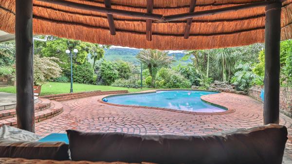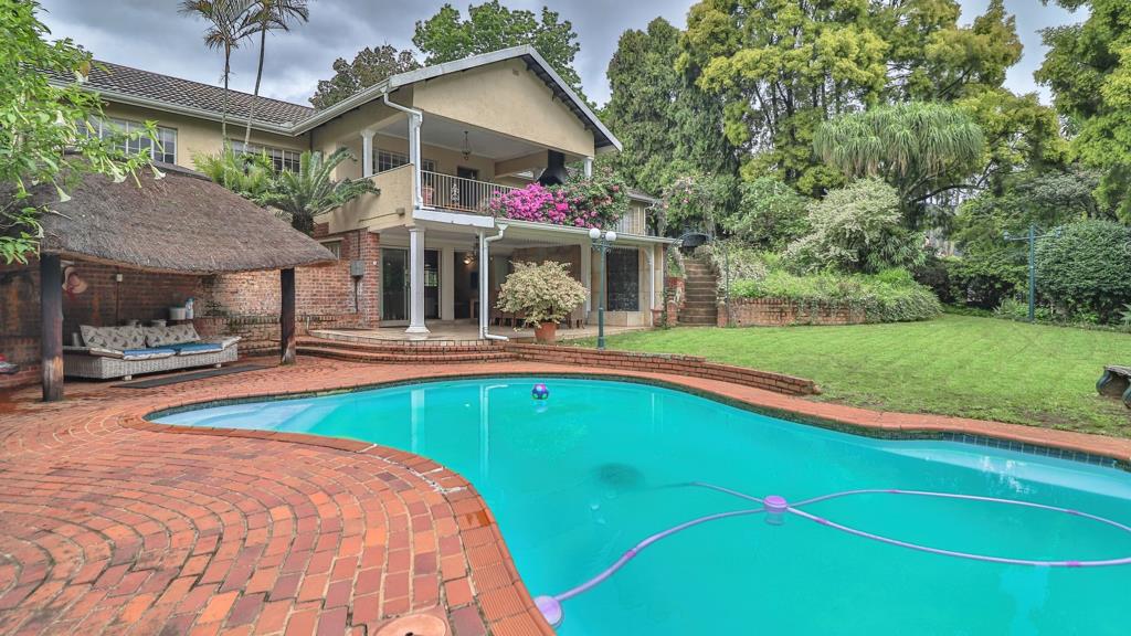 Downstairs, a dedicated barTV room invites year-round entertainmentimagine enjoying rugby on a warm summer afternoon with doors opening directly onto the sparkling pool area. A thatched lapa completes the leisure space, offering a relaxed spot to unwind while overlooking the garden and pool.