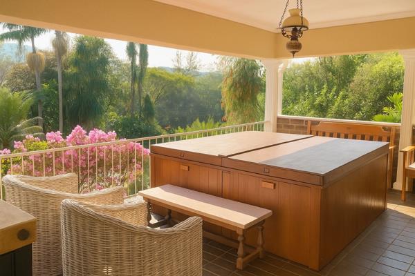 At the heart of the home is a spacious kitchen featuring ample cupboard space, a cosy breakfast nook, and a separate laundry. The formal lounge opens onto a balcony complete with a jacuzzi bath, the perfect spot to unwind while enjoying impressive views of the beautifully landscaped garden.